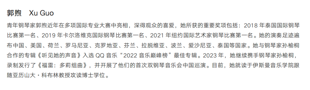 从一架钢琴到四架钢琴,从西方古典到中国当代,层层递进,精彩纷呈。全部录音来自2024年7月19-20日国家大剧院音乐厅的演出实况。