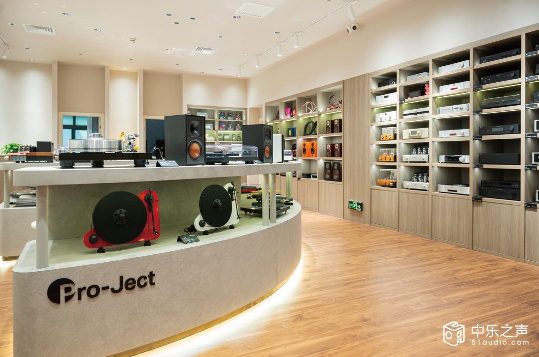 门店总面积达800多平方米,空间规划极为讲究。不同于传统音响店堆货式的陈列,乐颂坊将整个空间划分为三个品牌专卖店与一个综合店,每个区域都有独立的声学设计与装修风格,既保证了不同品牌器材的特色展示,又避免了声音相互干扰,让每一位顾客都能在专属的“声音空间”里专注聆听。