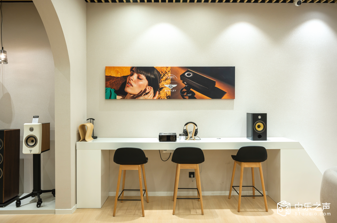 店内还专门设置了交互体验区。搭配英国Naim的功放与串流播放器,可模拟家庭环境的体验;可用Naim的前端聆听Focal铍单元耳机。在开放式聆听空间,顾客可随意坐下,让店员播放自己喜欢的曲目;在这里,是法式音响的艺术感与英式电子设备的精准性完美融合。法式设计让器材成为家居风景,英式技术让声音还原本真质感。这种碰撞不仅满足了听觉需求,更契合当下人们对高品质生活场景的追求,也让Focal Powered by Naim专卖店成为音响爱好者的必访之地。