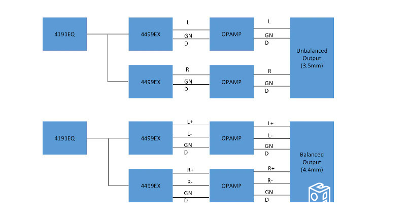 正如我在开篇介绍时所提及的,尽管SP3000M机身更为小巧,但Astell&Kern巧妙地保留了相同的内部HEXA设计,其中包含6 颗AKM 芯片。具体来说,有4颗AK4499EX 数模转换器负责模拟转换与处理工作,2 颗AK4191EQ 调制器用于处理 D/A 转换中的数字信号(具备 Σ - Δ 调制和过采样的数字滤波器功能)。就像我在SP3000评测中提到的,通常情况下,电路板会将模拟电路和数字电路分区布局。在此处,DAC芯片被拆分为两颗独立芯片,以此提升模拟信号的纯净度,降低噪声,提高信噪比,同时通过分离时钟的数字和模拟部分来减少时钟抖动。Astell&Kern采用了2颗独立的AK4191EQ 调制器,单端和平衡输出各由一颗负责 。