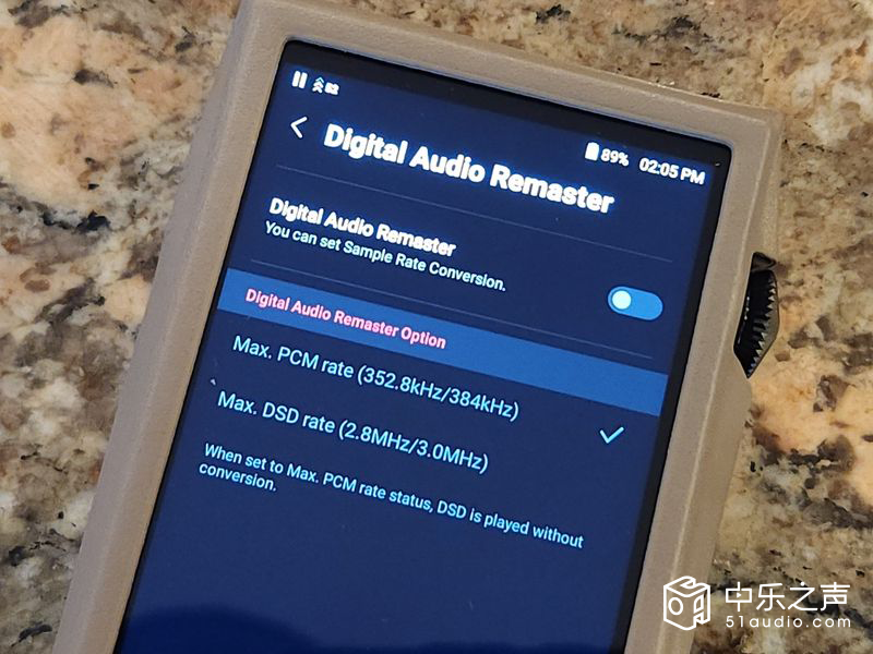 值得一提的是,SP3000M在数字音频重制(DAR)功能上进行了重大调整。在SP3000中,PCM 和 DSD 上采样功能由硬件实现,而SP3000M将其转移至软件层面。功能上,DAR(PCM)保持不变,44.1kHz 的PCM文件转换为352.8kHz,48kHz 转换为 384kHz。但 DAR(DSD)选项从在SP3000中的DSD256转换变更为在SP3000M中的DSD64 转换。正如前文所述,DAR 在软件中的实现不仅影响了电池续航,还对音质产生了一定作用,这一细节将在后续评测中深入探讨。