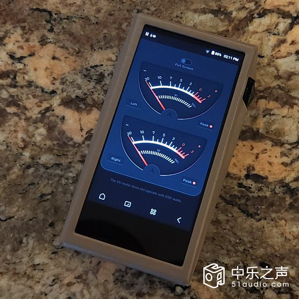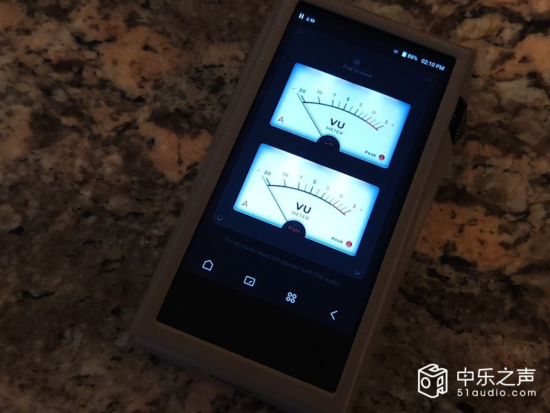 整体而言,更新后的图形用户界面在直观性和操作速度上均有进步。尽管依旧是优化的封闭式安卓界面,但这些改进使其更贴近原生安卓体验。底部常驻的导航栏方便用户快速访问流媒体服务、主屏幕(可自定义为默认视图)以及返回按钮,便于应用间的切换。双击屏幕唤醒功能也十分实用,减少了用户频繁按动电源按钮的操作。SP3000M的小屏幕在加入新功能如视觉效果出色的 VU 表盘后,依然能保证舒适的导航操作。