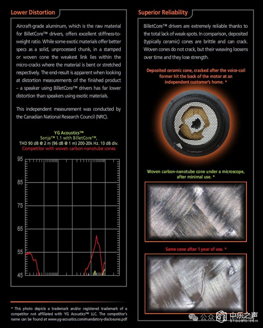 根据加拿大国家研究委员会(National Research Council Canada, NRC)的测试,BilletCore™单体比其他品牌的单体拥有更低的失真表现。