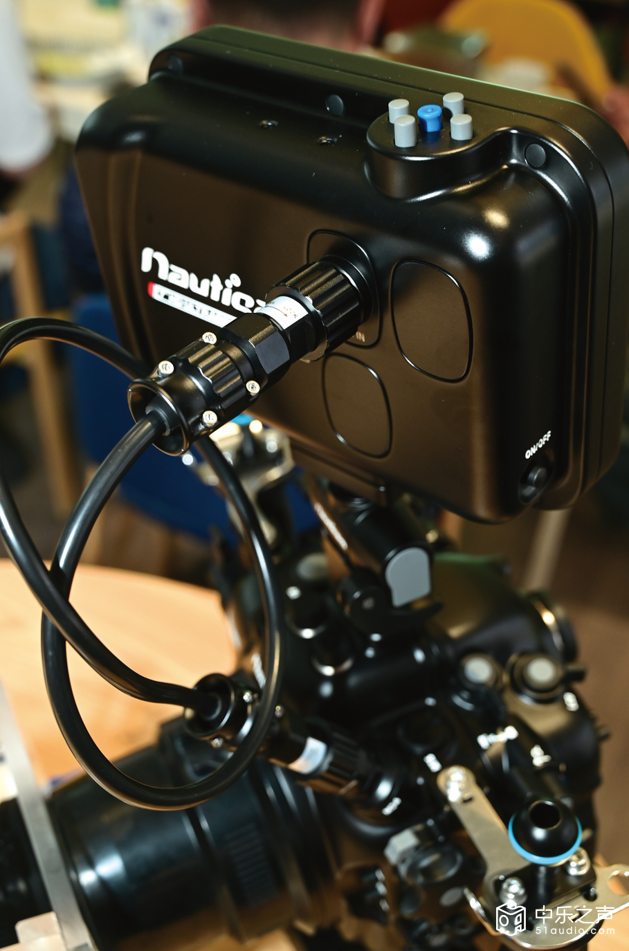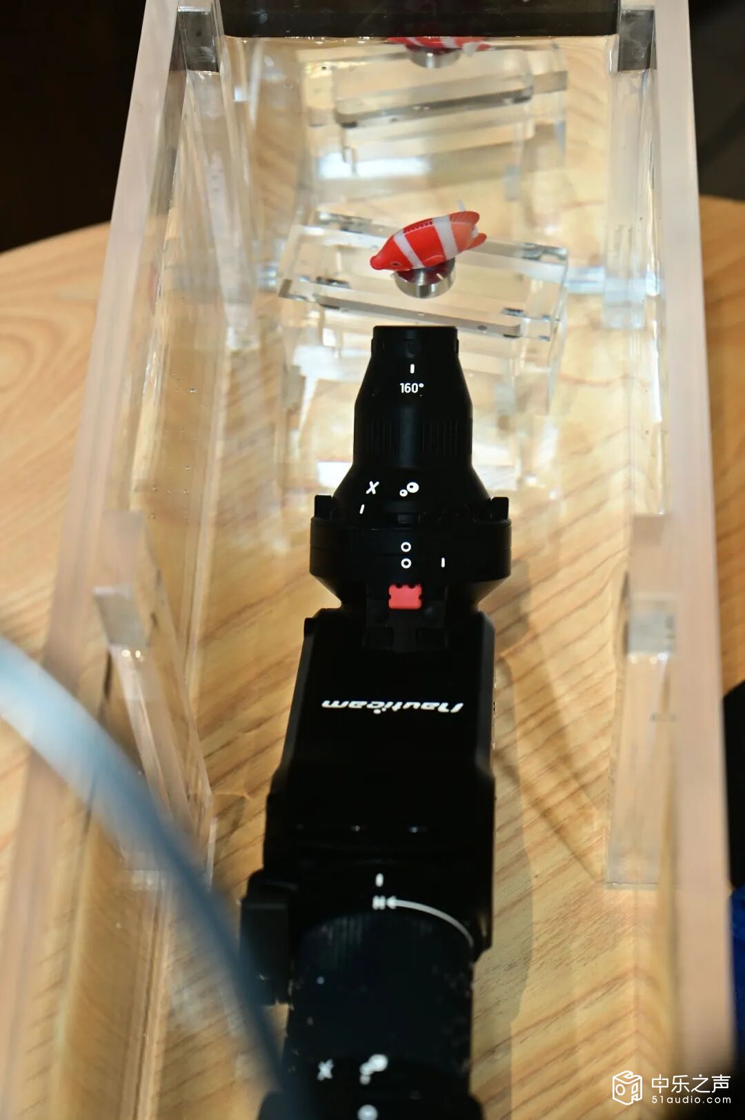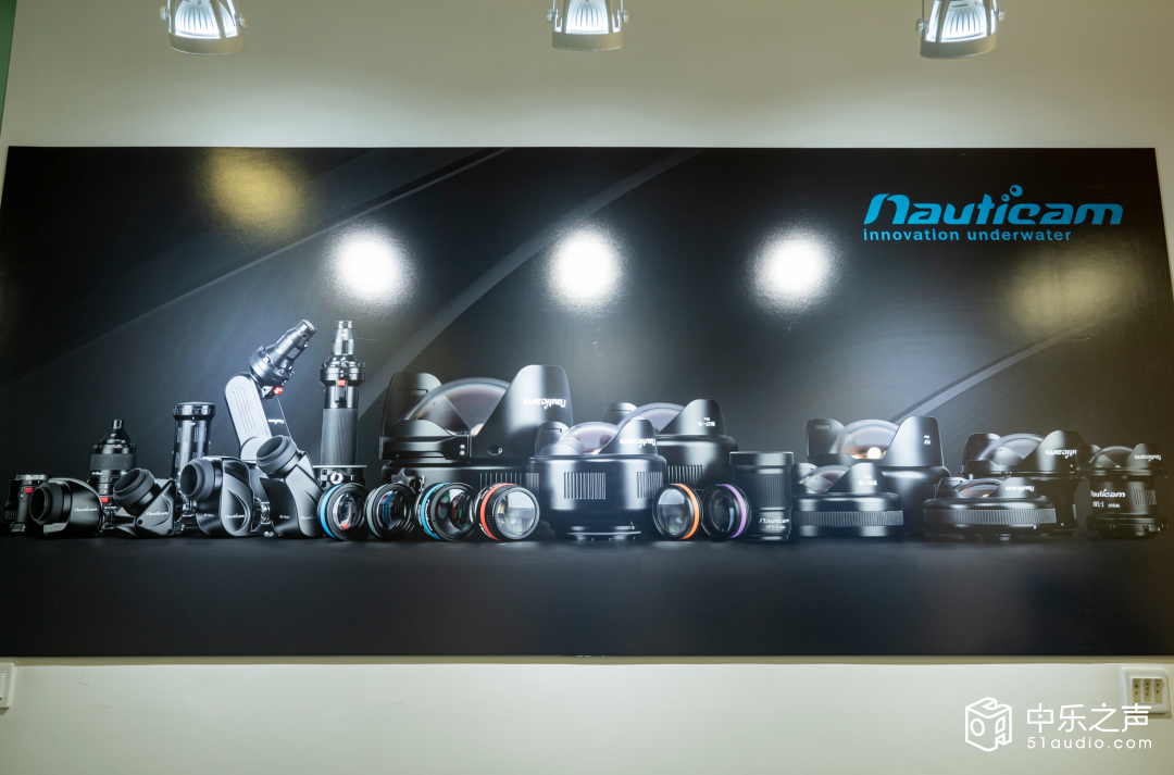 在Nauticam水下专业摄影设备的厂房与研发中心,墙上挂着不少大幅水下摄影作品,展示着Nauticam镜头下的深海世界:五彩斑斓的珊瑚丛中,鱼群穿梭往来,阳光透过海水形成一道道光柱,细微的浮游生物在光影中舞动,每一个画面都细腻逼真,仿佛让人亲临深海。这些画面的呈现,离不开极致的精密制造与光学设计。黎先生说,摄影与声学实际上都有共通性,无论是水下摄影还是音响播放,本质上都是对‘真实还原’的追求——前者还原视觉的本真,后者还原听觉的本真。