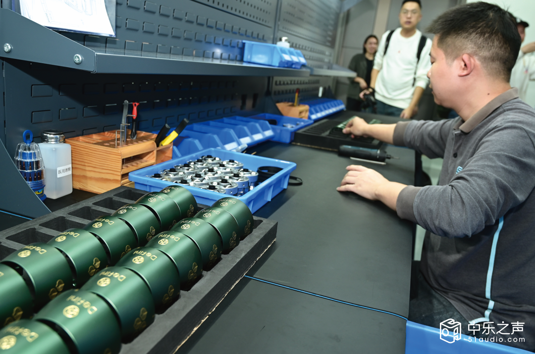 2025年12月初,力高音响邀请数家广州的音响媒体,以及录音师冯炜国等人,到东莞Defini(迪菲尼)工厂参观。东莞市新隆路周边是制造业腹地,连片的现代化厂房在亚热带季风的吹拂下静静矗立,Defini的生产研发中心便隐匿其中。不同于传统工厂的喧嚣,这里的园区绿植环绕,建筑外立面采用极简的工业风设计,大面积的玻璃幕墙倒映着蓝天,既透着精密制造的严谨,又藏着艺术创作的灵动。作为同时执掌Nauticam(蓝天)水下摄影帝国与Defini声学品牌的双料传奇,老总黎先生的匠心版图,正从深海走向声场,在这片制造业沃土上书写着跨领域创新的篇章。