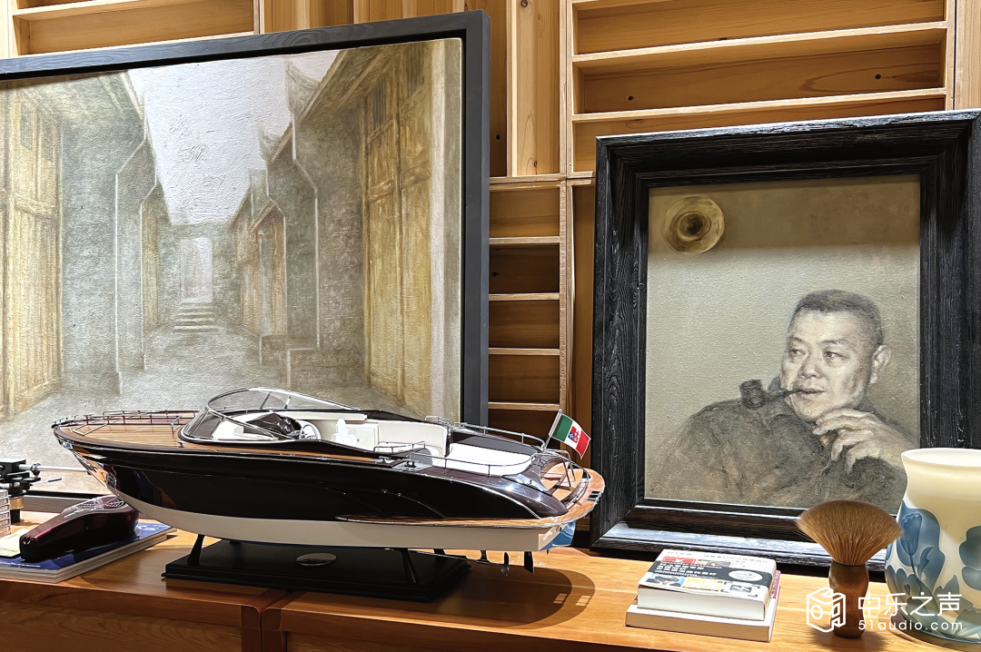 虽然永昌电器经营销售多个高级HI-END音响,并有私人影院定制、声学空间设计、智能中控集成系统设计等项目,还多了木艺家居和名家名画的销售。疫情期间永昌电器搬迁到高新区天府二街复城国际商业三楼,350平方米的空间完全按自己理想打造,宽敞开阔,没有咄咄逼人的器材墙,也没有紧迫盯人的销售员,几套简单的音响系统分散在油画与盆景之间,在咖啡香气与雪茄菸雾中,欣赏音乐又是另一种体验。四川教育学院美术学院教授曹阳的“老房子”系列油画,成都大学艺术学院教授杨春生的山水画作品,在张子永的介绍下就也培养出一批收藏者。