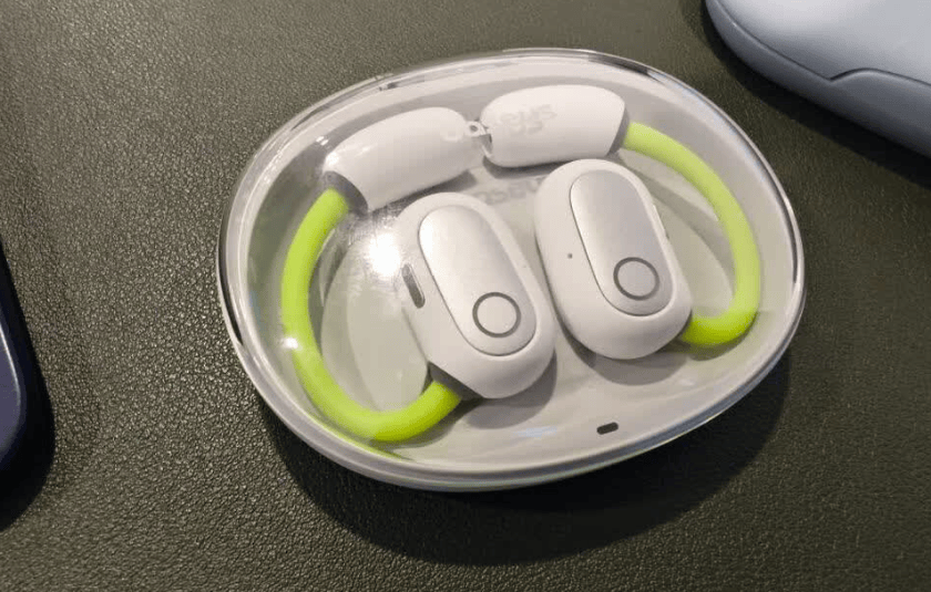 倍思Eli采用开放式挂耳设计,佩戴时能自然感知外界环境,适合运动及户外场景使用。它搭载16.2mm空气定向传导喇叭,人声清晰明亮,高频细节自然,整体听感通透开放。不过低频表现偏向轻盈,力度和下潜相对有限,更适合日常人声、播客或轻音乐等内容的聆听。