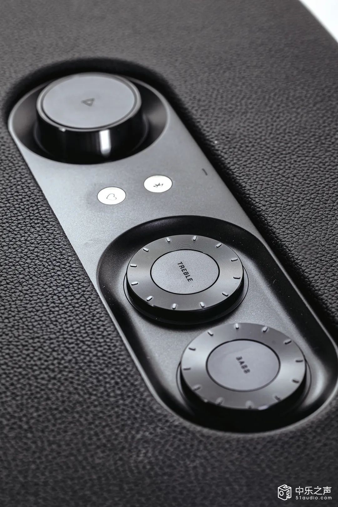 JBL音乐世家500在操作设计上同样展现了其人性化和便捷性,顶部有三个旋钮和两个按键,左侧单独排列的旋钮用来操控音量并且通过按压可以播放暂停,右侧的两个旋钮则分别调节高音低音。旋钮外圈的灯光设计,随着旋转的角度亮起,为JBL音乐世家500增添了一抹科技感。其中两个按键则分别用来操控蓝牙、APP连接。而将JBL音乐世家500的智能体验提升至新高度的,是JBL的专属APP——JBL One。这个APP将JBL的音箱系统形成了一种生态,用户可以通过APP进行不同JBL设备之间的连接,还能在APP里进行一系列的设置。专属APP JBL One还内置了许多流媒体平台,通过APP可以连接WIFI、Airplay等流媒体操作,让音乐播放更加便捷。