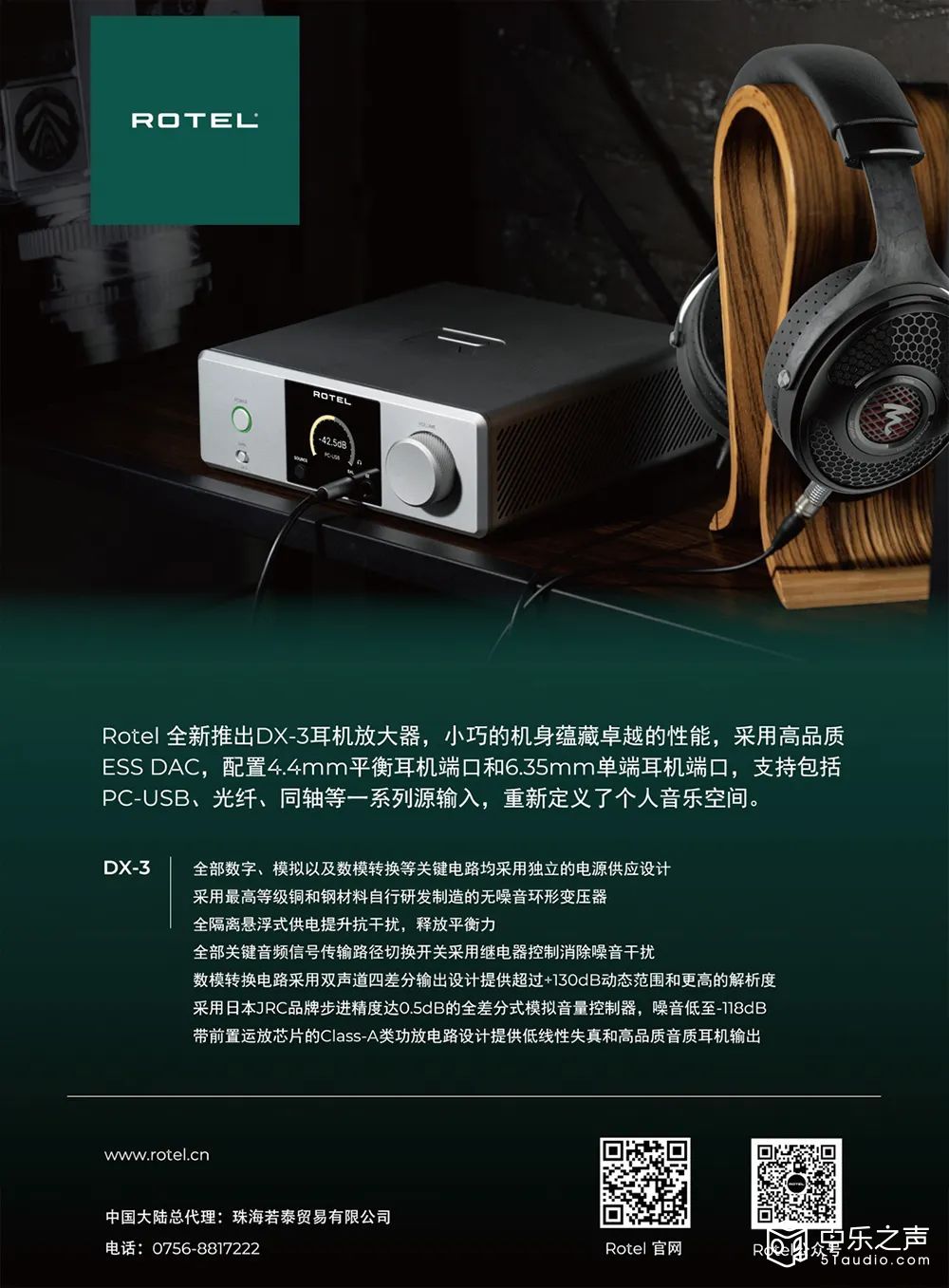 ▲ DX-3是ROTEL历史上第一款独立的耳机放大器产品,而且,它不仅仅是一款独立耳放,还是解码器,内建蓝牙/数字/模拟输入,以及作为前级使用