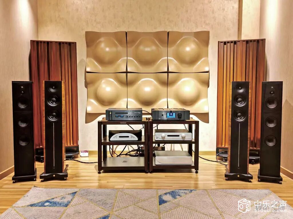 ▲ 试听现场的GOLD NOTE A6 EVO II和Rosso Fiorentino Certaldo 2 落地箱