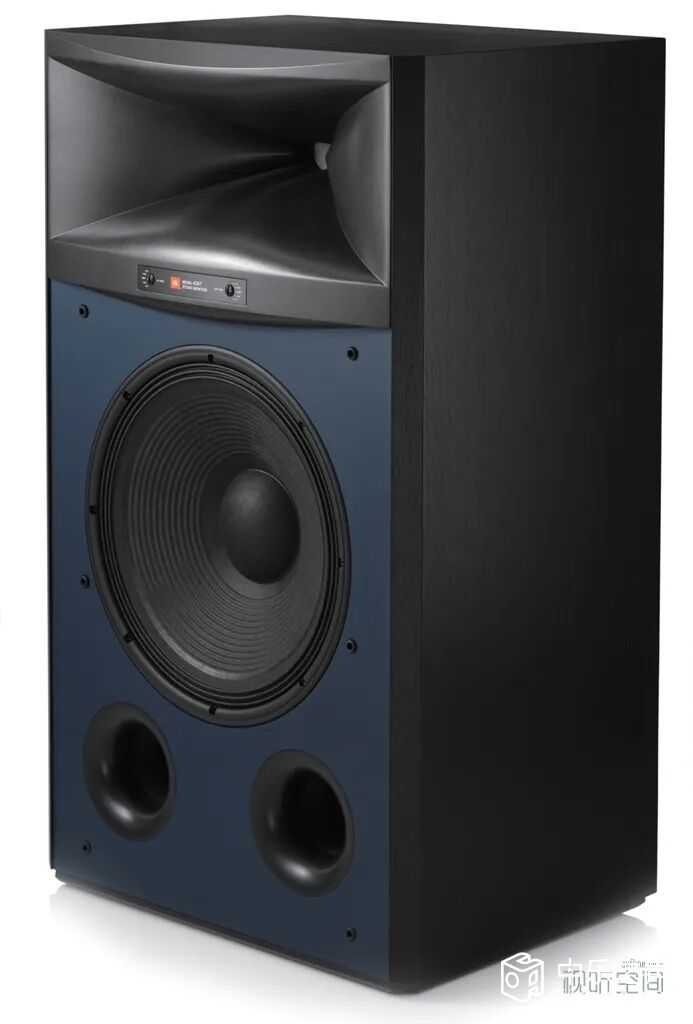 JBL 4367则是JBL专业监听系列的顶级型号,沿用了旗舰型号M2 Master Reference Monitor 的技术方案,能提供专业级的高品质声音。它采用15英寸的2216Nd-1纸盆低音单元,双差分驱动设计让低频下潜更深、量感更足、层次感更好,风琴布边的悬边设计使低频动态表现出色。高音部分采用双振膜双音圈同轴设计的高音模组,由1只3英寸的中高音及1只1英寸的超高音组成,共同负责700Hz-40kHz的中高频,超高频段的泛音表现自然,中高频的能量和密度感优秀。JBL 4367频率范围为30Hz-40kHz,灵敏度达到94dB,标称阻抗为6Ω,易于驱动。外观上,JBL 4367箱体尺寸较大,带有钢制锥形脚。两款音箱都采用前置双倒相孔设计,可以靠墙放置,对摆放要求不高。