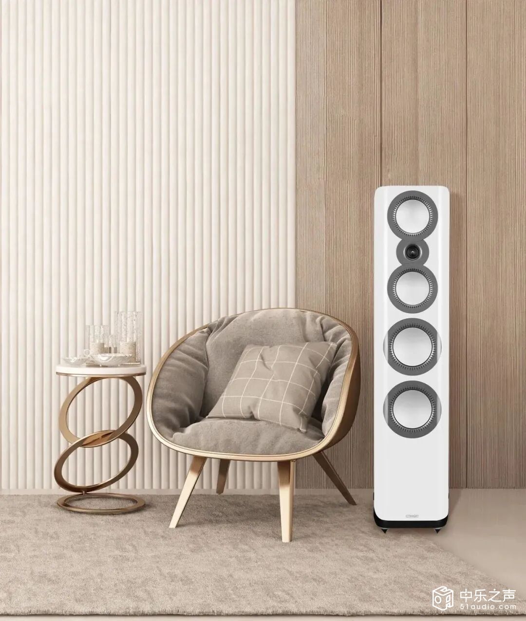 低音表现方面,ZX-5配备两对铝合金振膜低音单元,并搭载 Mission 专属的DiaDrive技术。该技术通过在振膜背部设计特殊通风孔,有效降低单元振动产生的谐振,确保570Hz以下频段的稳定输出。音箱背部采用不对称扁型条状低音反射孔设计,可大幅减少气流噪音,保障低频输出的纯净度,避免出现浑浊闷塞的听感。