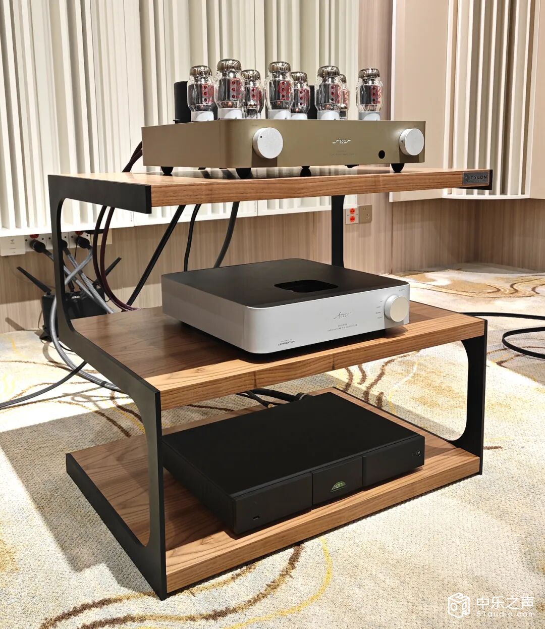 本次测试在广州番禺区的域丰音响一间约40平方米的听音室内进行,使用了Naim的数播、FEZZ Equinox DAC解码器测试音乐,涵盖了古典、爵士、流行和人声等多种类型。FEZZ Equinox DAC解码器采用Burr-BrONMPCM1794解码芯片组与12AU7电子管的核心组合,Fezz/Toroldy工程师团队特别为其开发了Supreme级环形电源变压器,确保供电系统的纯净与稳定。FEZZ Equinox DAC解码器一台是真空管解码器,目前市面上大多真空管解码器都有LAMPIZATOR品牌生产,LAMPIZATOR 是一家来自波兰的高端音频品牌,其产品线覆盖从入门到旗舰的多个层级,价格跨度约 3,000 欧元至 20,000 欧元以上,价格大多都比较昂贵。FEZZ Equinox DAC解码器是全球首款获得LAMPIZATOR授权认证的第三方品牌,并且在售价上也满足FEZZ相对合理的定价方式,对比同类产品便宜很多。上次测评就测试过了Evo Titania合并胆机和JADE 20音箱的组合,FEZZ和PLYON的组合并不是简单的搭配在一起,而是在声音风格上有着异曲同工的理念,同时能够激发互相的潜力。这套组合实测下来最让笔者惊喜的是其中频的音色特质。人声和乐器的再现非常自然真实,有着胆机特有的温暖和甜润,同时又保持了极高的解析力和透明度。播放爵士乐和人声专辑时,歌者的口型、气息变化乃至细微的情感波动都能清晰可辨。钢琴、小提琴等乐器的音色准确,质感真实,没有任何夸张或染色。中频密度高且富有感染力,长时间聆听也不会感到疲劳。ennifer Warnes的《The Hunter》一直是音响系统低频测试的试金石。在这套波兰组合的表现下,这首曲子展现出了前所未有的震撼力。