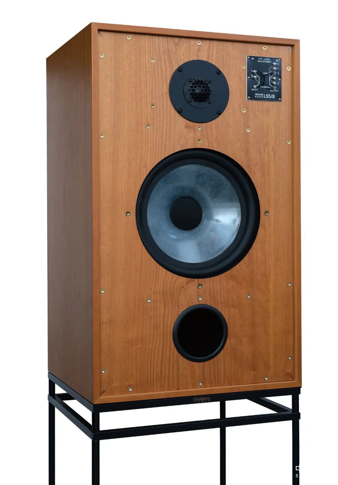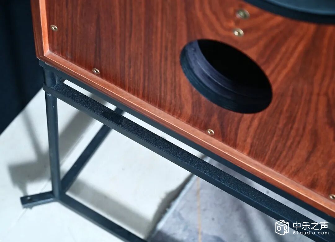 为还原经典,Graham贵涵与英国Volt Speaker喇叭厂合作,严格参照BBC原始技术参数,复刻了12英寸透明聚丙烯音盆低音单元,升级音圈耐高温材料,在提升高声压能力的同时进一步降低失真;高音单元则延续与法国Audax的合作,还原34mm软球顶设计与金属保护罩,确保高频表现的原汁原味。箱体依旧采用12mm桦木夹板,内部阻尼材料与倒相结构完全遵循白皮书规范,甚至保留了原厂金属脚架——这套看似简约的四立框架,实则是与音箱完美匹配的绝配,能有效优化整体抗振性能,让箱体共振避开中音区,保证中频准确的同时增添音色鲜活感。