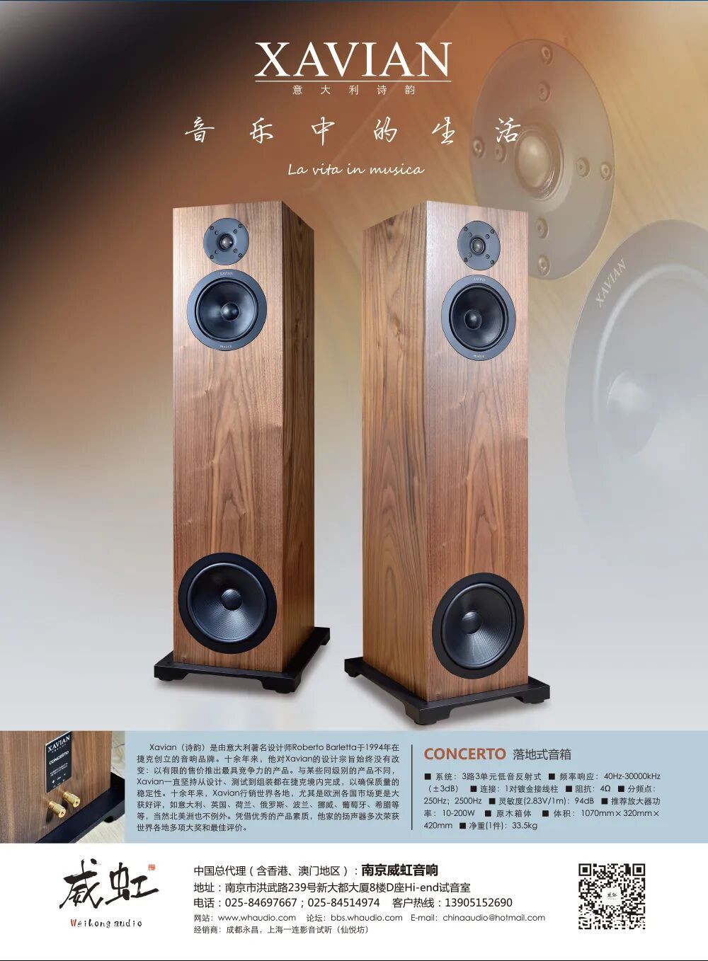 Concerto 采用26mm丝质半圆顶高音单元