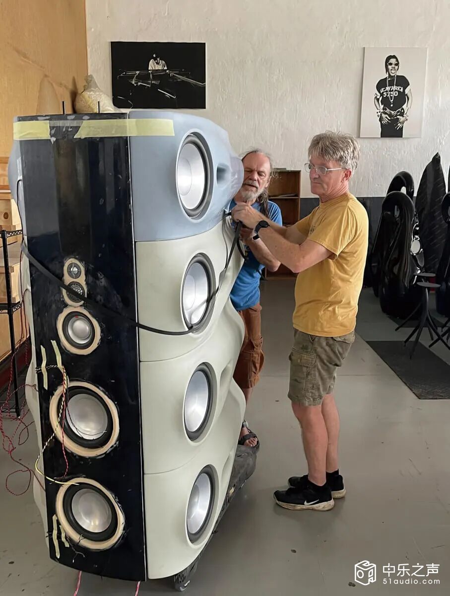 Dickie简单解释为什么要把音箱设计成如此形状。我们听到的声音部分会从音箱单元直接传到耳朵,但途中受到箱体尖锐边角反弹(也就是常说的绕射),这种干扰会产生不规则的离轴响应,增加声音的染色。他设计的光滑的曲面,可以有效消除这种绕射干扰,结果我们获得频率响应平稳,透明无染色的效果。传统的方形扬声器必须填充很多阻尼吸音材料,Vivid的设计完全不同,更少的吸音材料提升了活生感与细节,同时带来前所未有的视觉震撼。当赛车比赛中强大的汽车全速转弯时,当小号独奏中吹出高音时,或者当芭蕾舞演员用尽她肌肉的最大力量时,不仅需要原始的力量,还需要使用该力量的技巧。设计音箱也是如此,有时需要最先进的技术来调整最微小的声音表现,如果缺乏控制和精确度,只能发出不受调节的大声压而已。Hi-End音响要求听清管弦乐渐强过程中最微妙的细节,或者在震耳欲聋的鼓声中欢众欢呼的声音,同时保持小提琴的纤细绵密与钢琴的铿锵圆润。M1 Moya实现了这种极度精致细腻,同时又能重现摇滚音乐的力量,真正做到文武兼备,动静皆宜。
