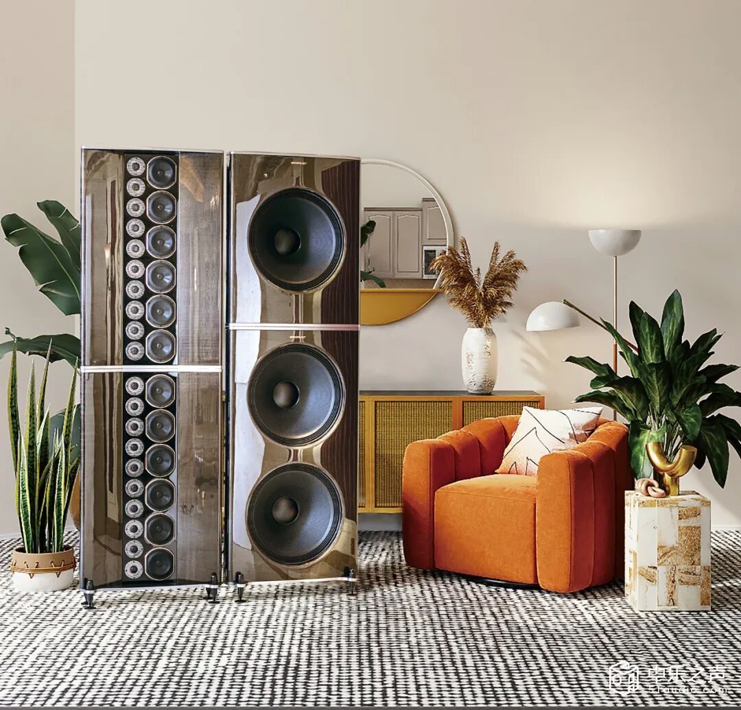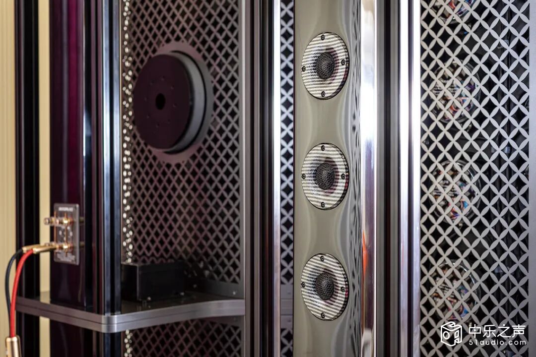 ▲中音单元:5.25英寸扬声器单元组成中音线阵结构,这只特制作的中音单元采用复合材质振膜,频响宽阔,能够极大地还原声音的自然质感,表现出极为细腻的音色铝合金铸铝盆架,刚性强,散热好。6只中音单元则是5.25寸的铝盆架单元,使用了Y40高性能磁铁、Kapton音圈,使得中音单元能够承受更大功率,获得更小失真,其音色干净且饱满,速度与瞬态响应得到了加强。