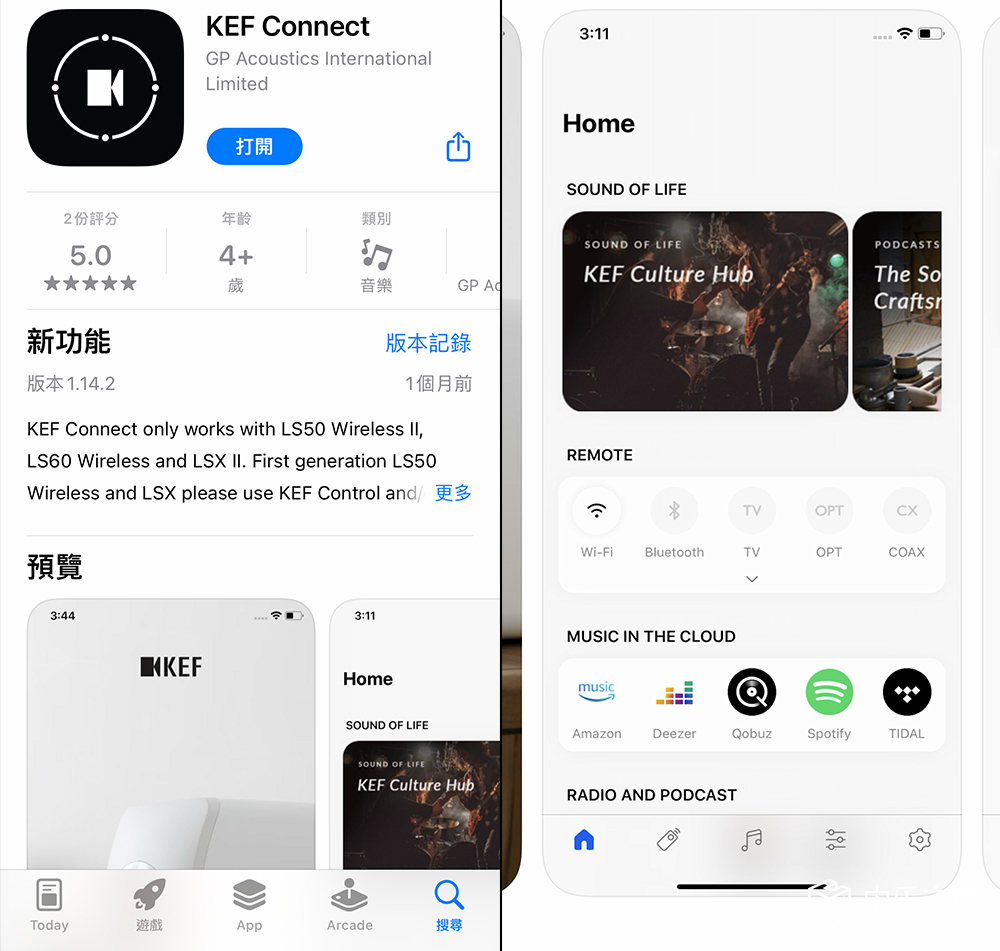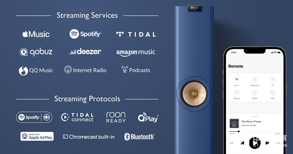 KEF Connect 支持的音乐串流当然不只这些,不仅支持多种主流音乐流媒体服务,KEF Connect还可连接Internet Radio、Podcast,并且自动连接区域网络的 NAS 音乐数据库,这代表 LS60 不光是数字无线有源音箱,而且将网络流播放器的功能,一网打尽。