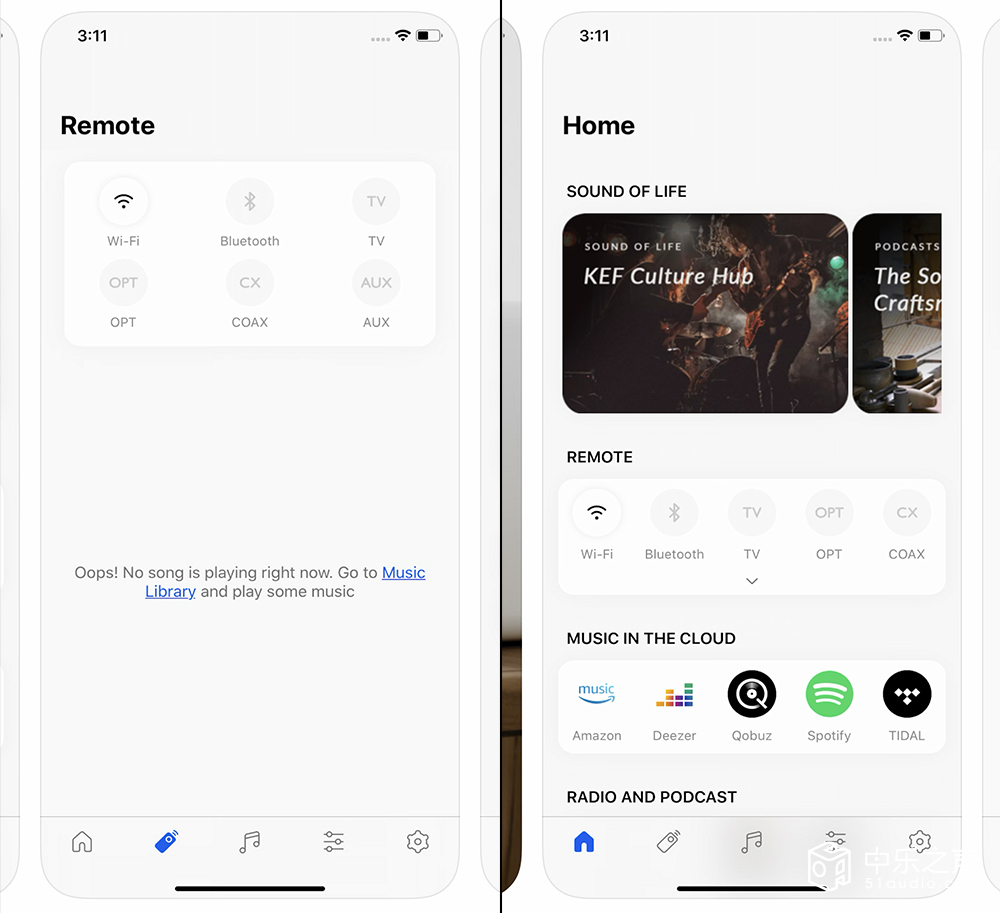 再来我要讲 LS60 进攻心的设计,那就是 KEF Connect App,想要随心所欲操控音响系统,只需要一个简单好用的 App。设想这样的情境:下班回到家,打开手机,点 KEF Connect,选择任何一个音乐输入方式(通常是 WiFi),就能自动唤醒休眠中的 LS60,再从 Spotify、Apple Music 或 Tidal,点击喜欢的音乐,LS60 就会愉悦地唱起歌,将缪斯女神传唤到面前,这样享受音乐人生,惬意不?