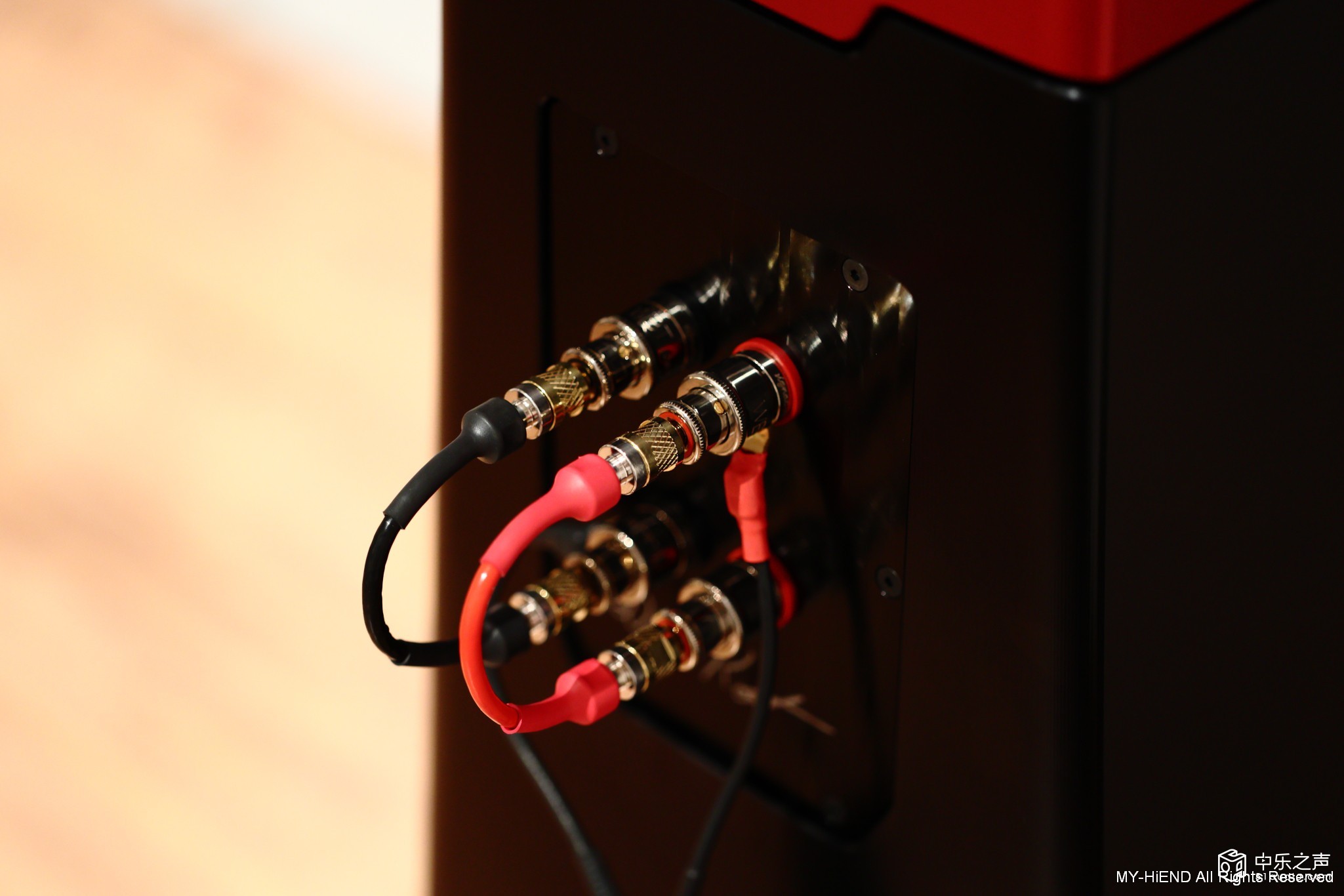 比较特别的是这次送来的Hailey 2.2上半部分的中高音箱体采用红色外观处理,下半部分的低音箱体则采取黑色外观处理,与过去一贯的黑色单色外观有所不同,目前厂家也提供不同颜色外观可以让客户选择,当然也可选择整个音箱都是同一颜色或是混搭,但因为这些都必须透过金属处理做到颜色变化,所以应该是要另外加价与制作时间。在音箱线连接部分Hailey 2.2提供2组输入音箱端子,分别对应中高音与低音并且提供跳线可以使用,这也带来更多玩法和声音的变化,用户可使用两对音箱线对接不同功放,也可使用一对音箱线搭配不同跳线,总之喜欢什么声音就用什么,试了就知道,变化更丰富更有趣。