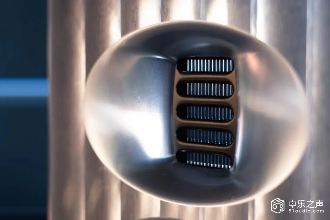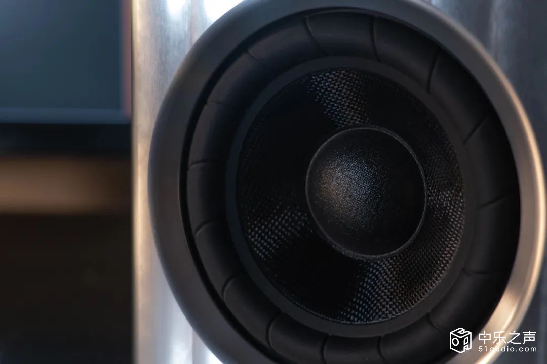 所有的封闭箱都有这个特点,它会不是那么有脱箱感,人耳离开声轴了以后声音会差别比较大,可以看到它这声学的设计,这个整个弧面比较大的这个波导也是对声音是有帮助的。