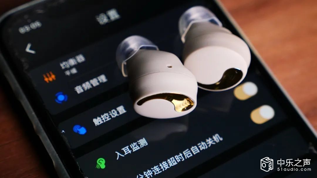 整个产品从外在来说,设计感看着颇为用心,腔体和电池仓腰线上都有金色的设计元素。佩戴感较佳,可能说佩戴牢固度不能跟那些附带鲨鱼鳍设计的类比,不过外在综合分已经超出我预期很多了。