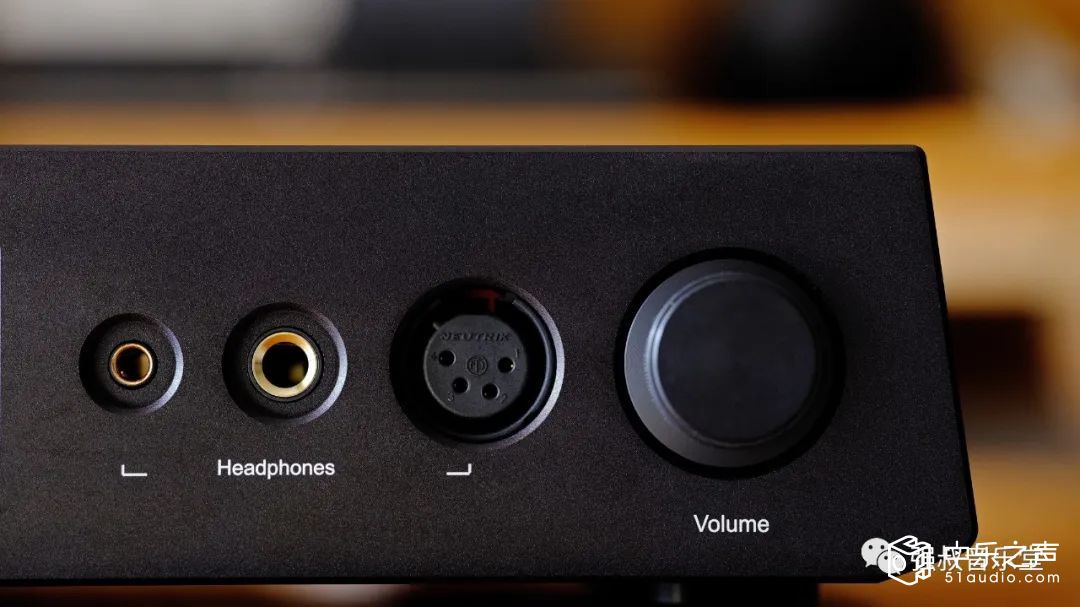 4.4mm平衡、6.35mm单端及四芯平衡规格三个耳机输出孔依次排列,按压式功能旋钮位于最右端。