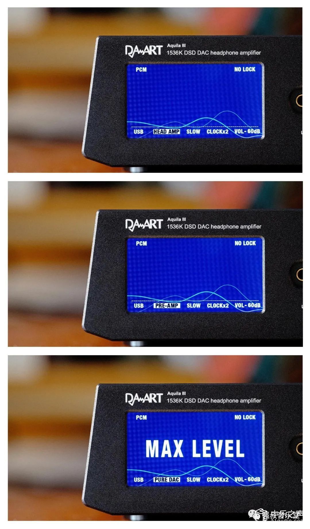 再次按下功能旋钮进入输出模式选择,耳机放大模式、DAC前级模式及纯解码模式。
