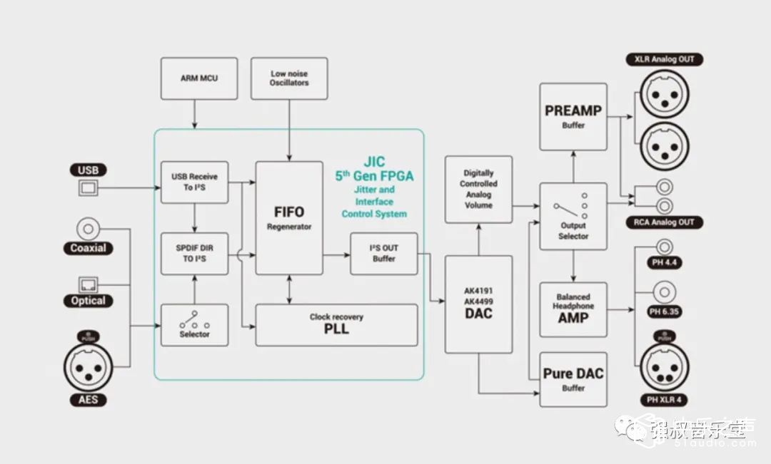 钰龙作为国内音频品牌长盛不衰的一个代表性品牌,我个人总结主要是有两点。第一点是实打实的技术实力,每次产品迭代都是以技术导向为核心。比如这次天鹰座三代采用的第五代JIC处理模块就是钰龙自主研发的,由ARM+FPGA组成,拥有USB界面信号处理、SPDIF解调、数据FIFO缓存、飞秒时钟同步PLL等多项科技手段。第五代JIC处理模块(Jitter and interface Control),在FPGA电路基础上增加了ARM微处理器,运行自主研发的USB界面,配合AK4499EX+AK4191率先支持全硬解PCM1536KHz和DSD1024的高规格格式。虽然目前主流音频文件码率都没有达到这么高的码率,但能支持更高规格的格式,让它能够拥有更高的带宽和更快的处理速度。这样就会使得解码延迟更低,特别是连接电脑、数播等设备使用的时候,其数据传输的稳定性更高。