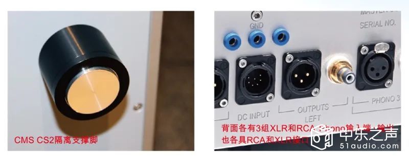 机箱升级的最后一个元素体现在最新的CMS CS2隔离/支撑脚,这是所有 Master Collection 产品上都具备的组件,虽然它的存在使设备的高度增加了,但是不会影响Master Collection 外壳固有的优雅,它们对整体声音性能做出了非常显著的贡献,它们对机箱和内部电子电路的机械和空气共振进行最大限度的隔离。