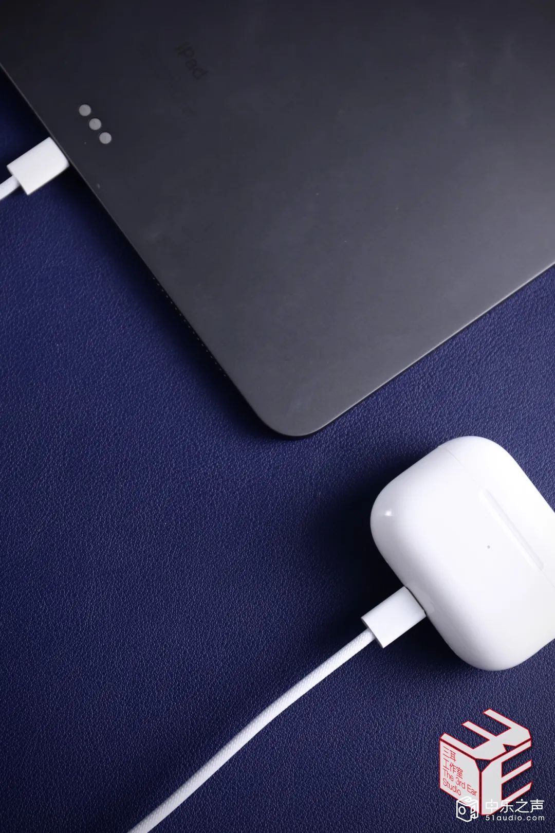 ① 外观方面唯一的变化,充电盒从 Lightning 转成 USB-C 口,用户可以用 USB CtoC 充电线让 iPhone / iPad 为 AirPods Pro 充电,另外还配备了与 iPhone 15 标配一致的编织外皮 CtoC 充电线。