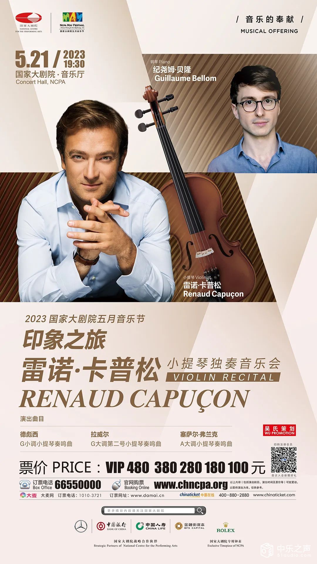 作为国家大剧院2023五月音乐节的重量级嘉宾,2023年5月21日,雷诺·卡普松将全新亮相国家大剧院,携手钢琴家纪尧姆·贝隆一同带来三部意义深厚的法国音乐作品,倾情演绎浪漫法式风情。