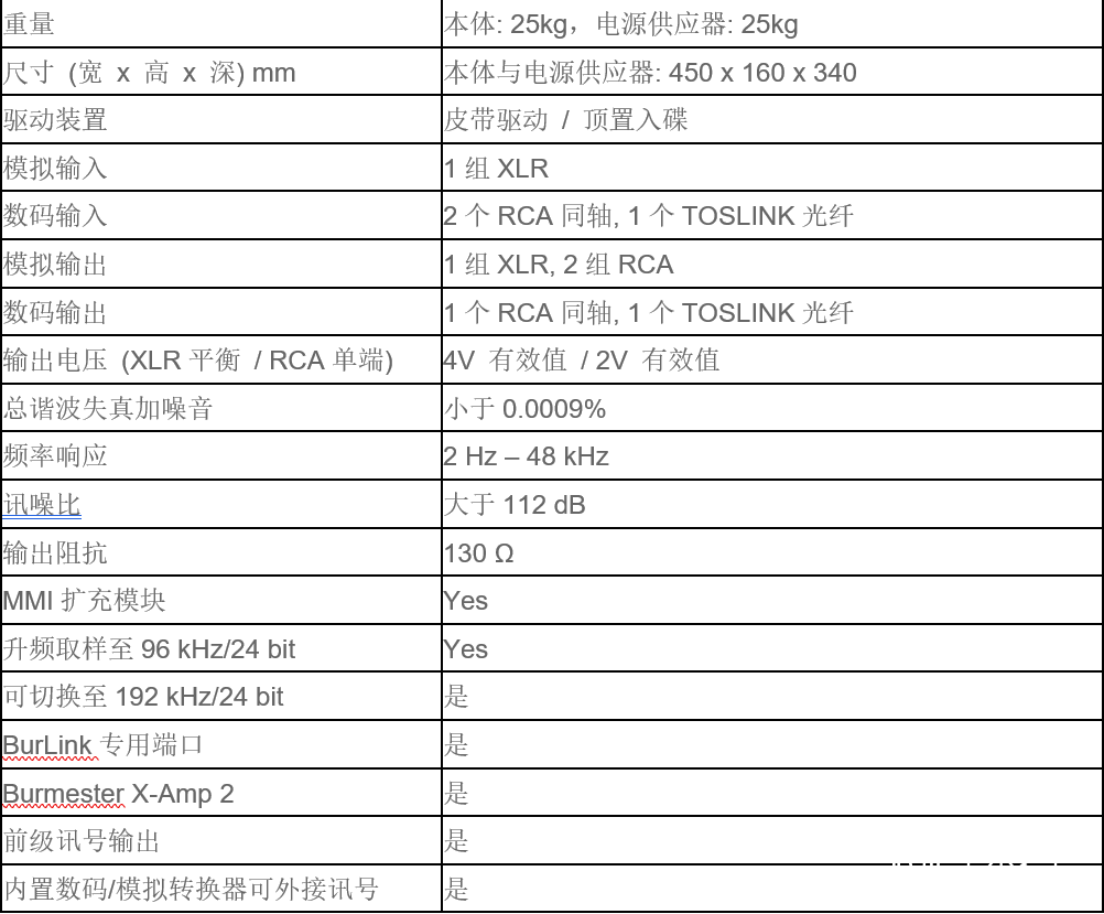 德国 Burmester 柏林之声069 CD播放器搭载了新开发的数字/模拟转换技术,以及皮带驱动系统。在这两项技术充分配合下,069的表现是无法想象的,由于具备3个数字输出、 1个模拟输出,以及选配的音量控制功能,因此069还可以当成前级放大器使用。069 搭载的CD驱动装置,是由拥有相当重量、低共振特性的整块金属所切割而成。整个驱动装置的重量可避免运转时受机械或声音干扰,确保CD拾取的纯净度。