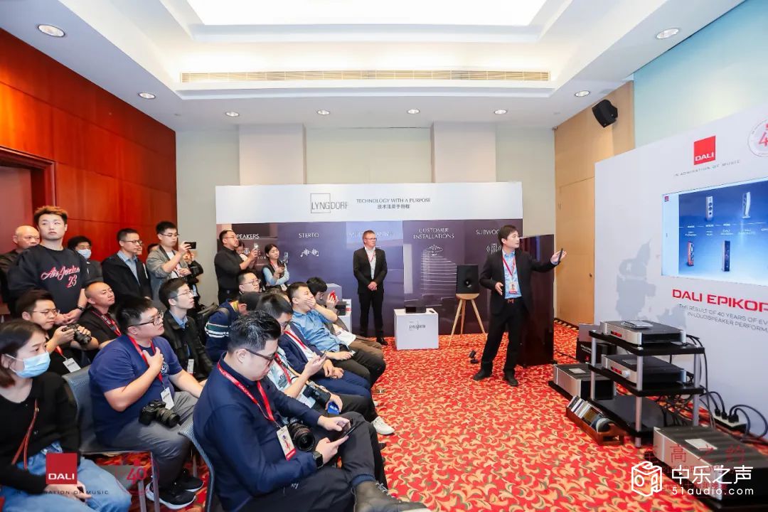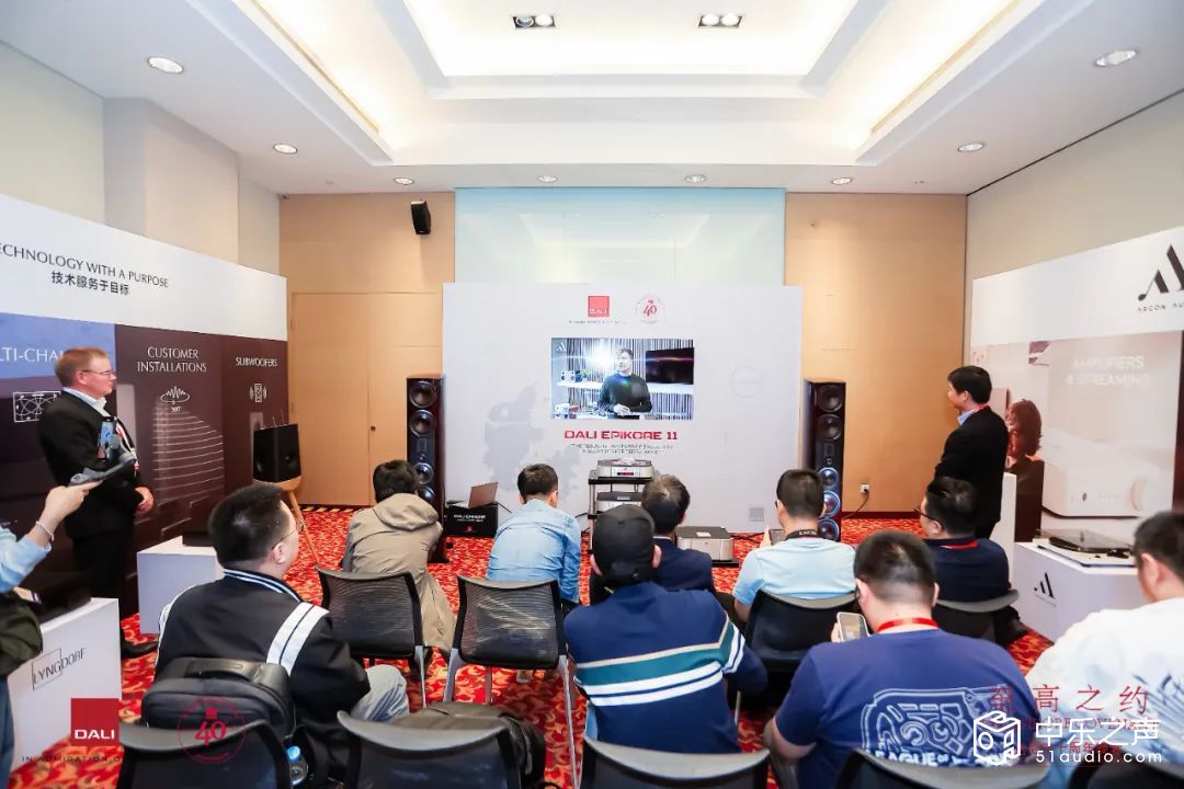 达尼(中国)销售总监洪光先生对EPIKORE 11进行了详尽的产品介绍。洪光先生先从DALI 40周年间产品的演变入手,生动形象地展示了DALI的成长与变化。然后话锋一转,由EPIKORE 11的命名开始讲起,将EPIKORE 11的特点及技术一一铺陈开来。