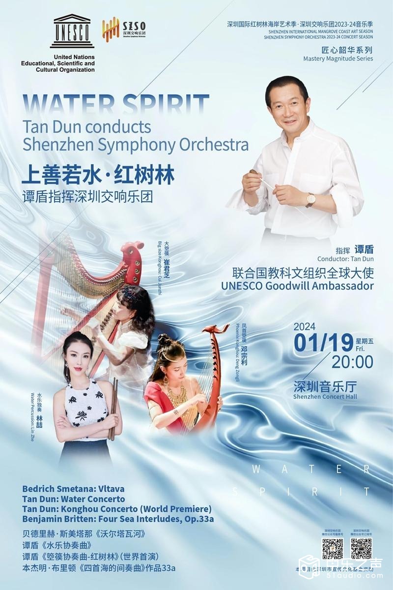 “上善若水。水善利万物而不争,处众人之所恶,故几于道。”这句出自《道德经》中的名言,昭示出老子对水的理解与赞颂。2024年1月19日,深圳交响乐团荣誉首席指挥、世界著名作曲家、指挥家谭盾携《水乐协奏曲》及其最新创作的《箜篌协奏曲》,在深圳音乐厅与深圳交响乐团一起上演“匠心韶华·上善若水·红树林”。