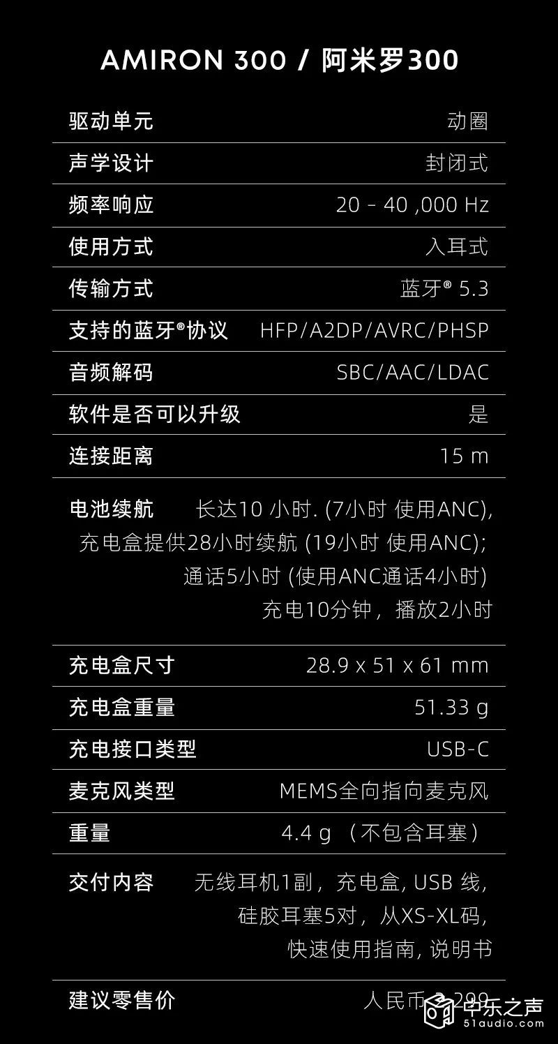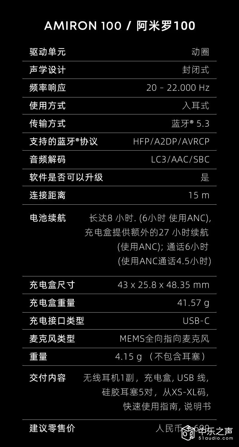 AMIRON 100入耳式耳机作为一款入门级产品,价格极具吸引力,并且是一款集高音质、便携性、能效和低延迟于一体的全能伴侣。