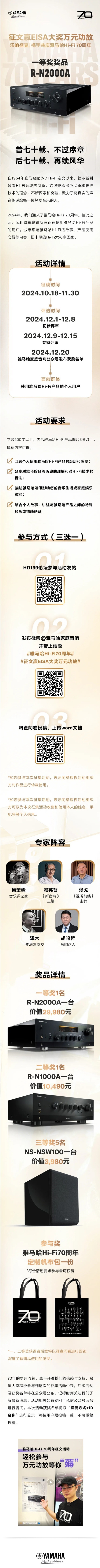 征文赢EISA大奖万元功放丨乐响盛宴,携手共庆雅马哈Hi-Fi 70周年