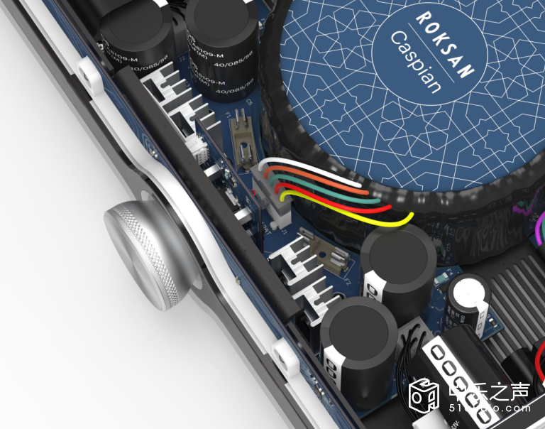 为了新一代的里海,Roksan定制了超大的变压器,每声道的电容贮备含量达到了36,400μF,为大动态的功率输出提供充足的能量。