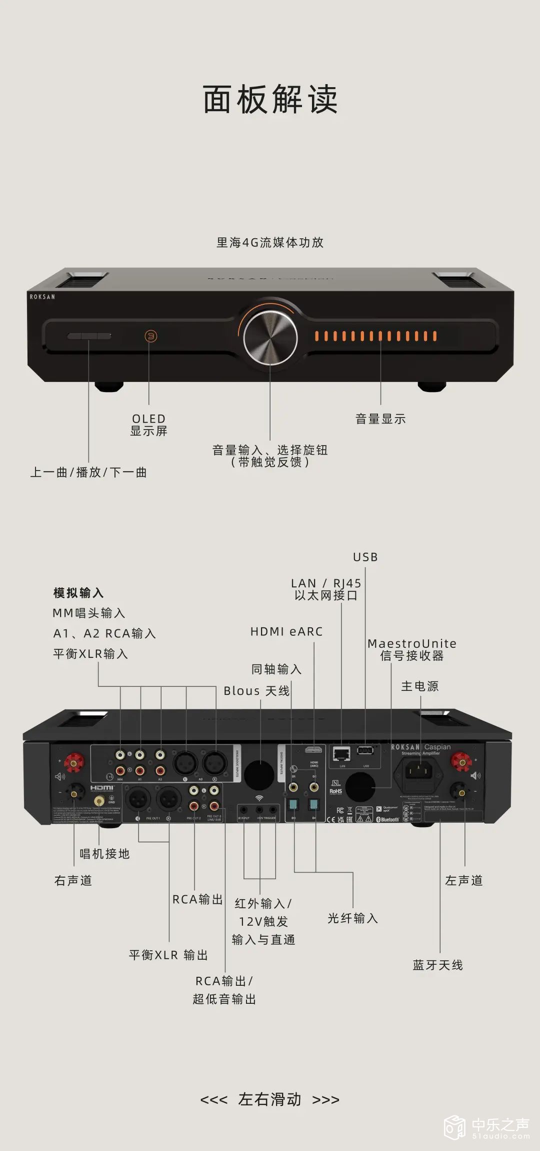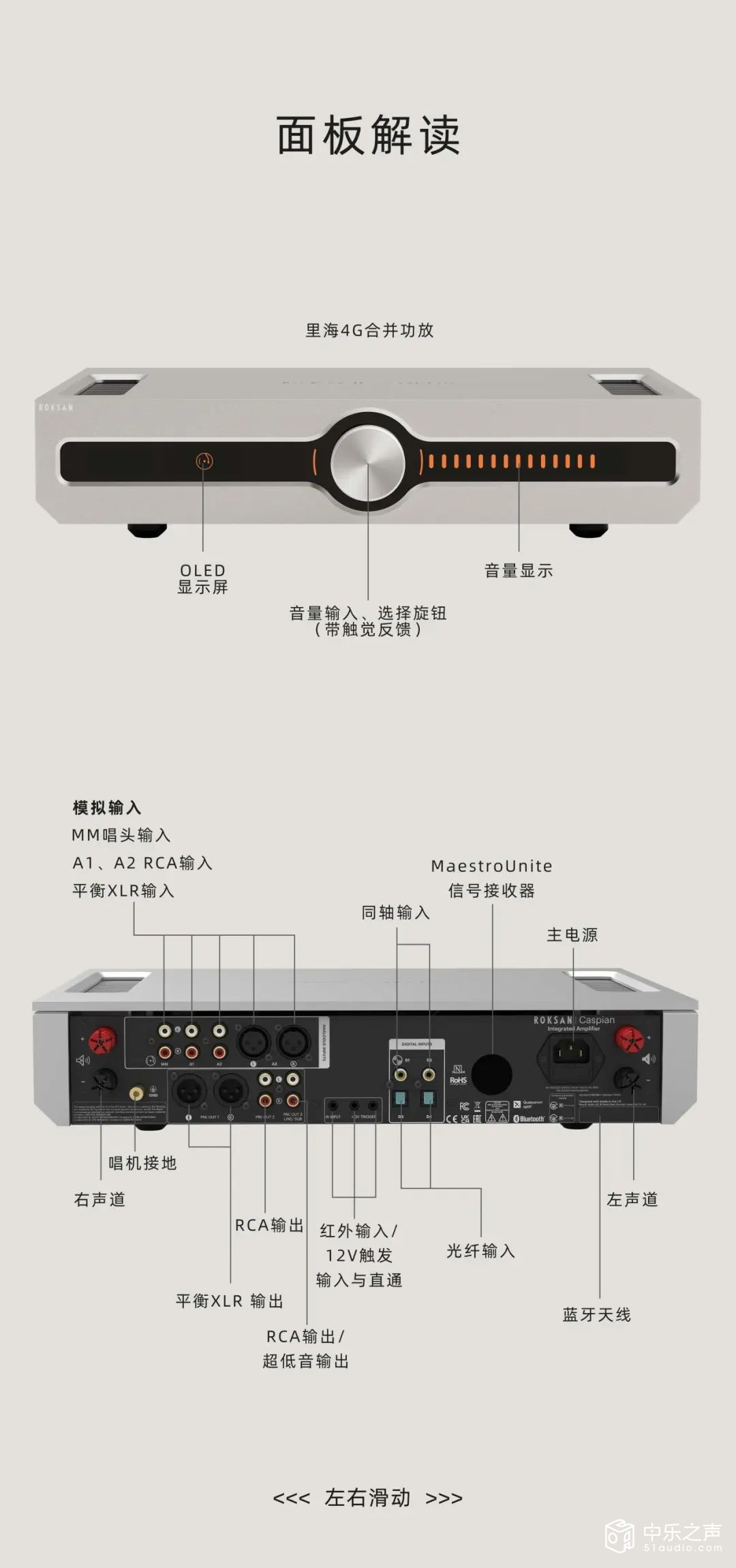 Caspian 里海4G采用了Roksan乐圣全新自主设计的权威智能 AB 类放大架构—Euphoria(优放),在功率输出和细节方面都表现出色。