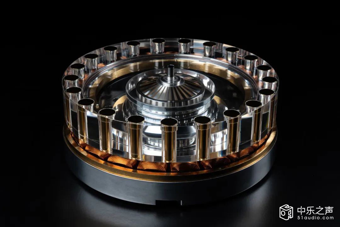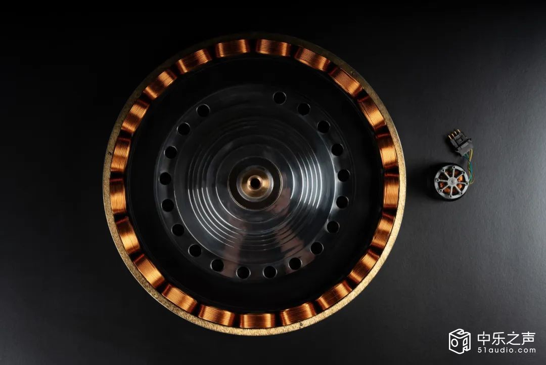OMEGA DRIVE直驱唱盘作为整套系统的核心,由27个不同的开发项目组成,旨在为系统提供无谐振和绝对精确稳定的转动。与传统的直驱电机不同,OMEGA DRIVE的巨型直驱电机直径为15英寸,超过了黑胶唱片的直径,也是传统黑胶直驱电机的5倍以上。同时,OMEGA DRIVE具有极低的扭矩,仅为0.001342牛米,这一特征带来了终极的转速稳定性。转盘本身不与周围有直接的接触,同时经过有限元分析使用两颗巨大的N30H NdFeB磁体将巨大的转盘悬浮于电机之上,使其与轴承的接触减到最小。这一彻底的无接触直驱设计使得GMT ONE拥有无与伦比的稳定性和零震动特性。OMEGA DRIVE可以说是唱盘驱动的终极形式。