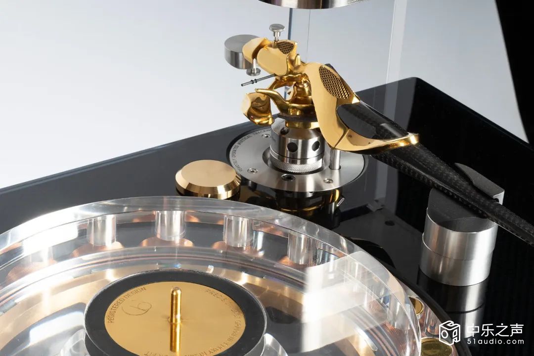 此外,在唱臂的后方,使用了钛合金的复杂结构再次提升整体刚性和阻尼。在钛合金组件的制造上,使用到了钛合金3D打印科技,使得钛合金组件可以以“生长”的方式制造,从而获得复杂的内部结构。钛合金组件有着中空、蜂巢、粉末三种不同的内部结构,通过精确的计算和设计使唱臂具有前所未有的性能。