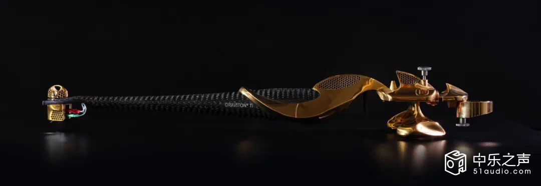 全新的GRAVITION Ti唱臂为三颗1mm直径的高强度滚珠支撑的单点结构,相对于传统的轴承结构提供了更精准和更灵活的拾取性能。唱臂使用了生物仿生科技进行设计,并使用了金驰引以为傲的碳纤维科技和钛合金3D打印科技,唱臂使用碳纤维以双螺旋编制的方式一体成型。石墨烯环氧树脂,单向碳纤维,内夹层等科技为其提供了更优秀的强度和阻尼。唱臂的开发是与法国FEMTO研究所和谢菲尔德哈勒姆大学合作进行的。数据表明臂管具有出色的强度和刚性在1232psi的最大压力下,臂管的形变仅为0.003mm。