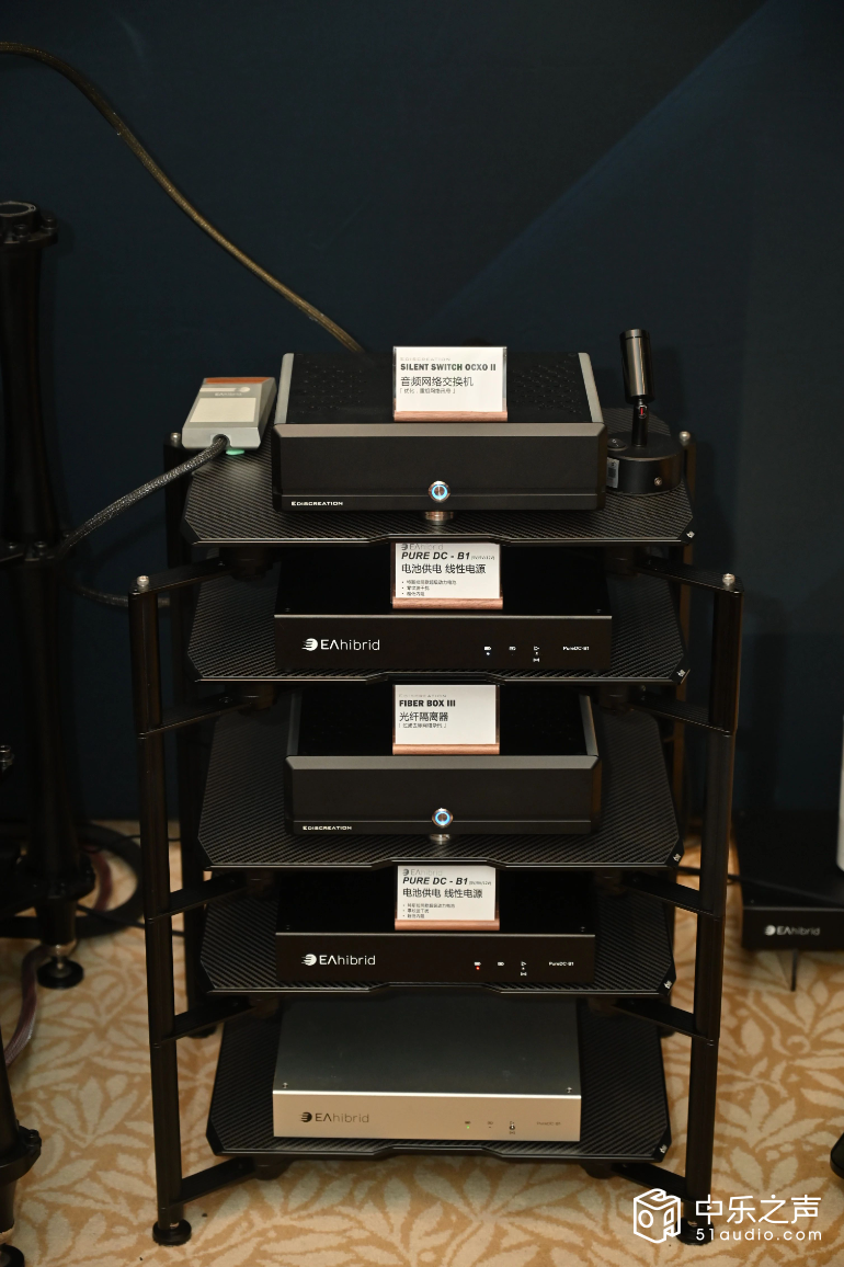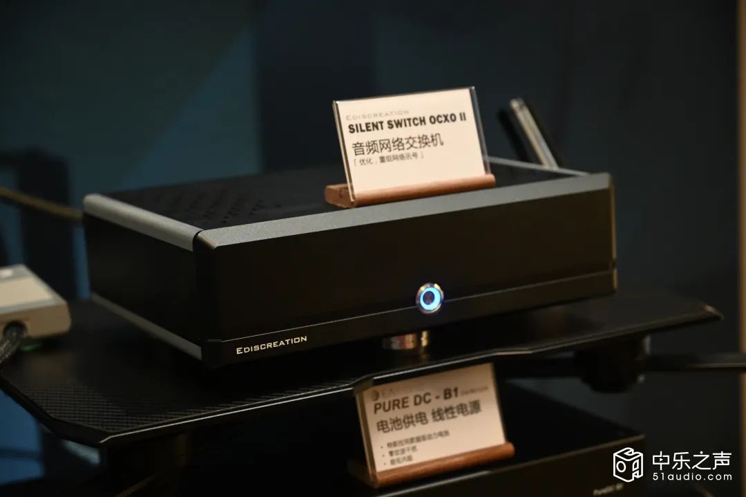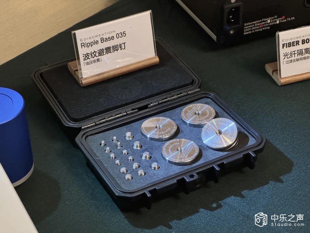 11月23日「2024广州国际音响唱片展」「714隽丰数码展房」。Ediscreation老板Edison现场介绍新一代明星产品:SilentSwitch OCXO II、Fiberbox III和RippleBase035避震脚钉~(下文简称SSO2、FB3、RB035)