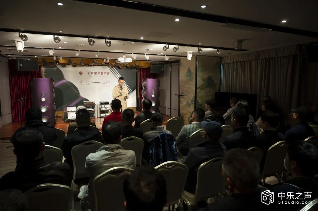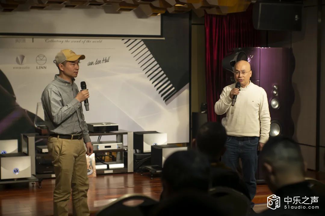 原本定于14:00-16:00的演示和直播活动竟然持续了四个小时,雅乐荟最大的演示厅音乐艺术中心座无虚席,同时透过直播吸引了一万多人观看,最高5600多人同时在线!活动由泽森音响旭东主持,泽森音响品牌经理黄嘉晓与龙兴源分别上台与观众交流。深圳雅乐荟音响中心总经理黄育生致辞到:非常高兴与泽森音响的合作,泽森音响是国内顶级的音响代理商,代理了很多的品牌,Vivid Audio 与Linn就是其中的佼佼者。虽然不同音响系统的搭配,会产生不同的声音,每个人的审美都不一样,但一套好的音响系统应该有它们的声音标准。雅乐荟常年坚持推广高端音乐文化产业、致力投身音乐文化事业,公司经营的品牌多档次高,以“汇聚世界的声音”提供卓越价值的视听解决方案,公司有多个专业影音室,最大的一间则是现场举办活动的雅乐荟音乐艺术中心。被誉为“音乐文博会”的雅乐荟除了多次举办深圳高级音响展外,也将世界顶级的音响系统推荐给大家,包括今天演示的这套Vivid Audio 与Linn顶级系统。