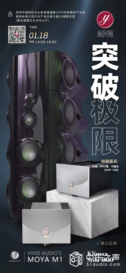 2025年1月18日,位于深圳市福田体育公园文化体育产业总部大厦26楼的雅乐荟携手泽森音响,在雅乐荟音乐艺术中心举行了一场堪称“速度与激情”的巅峰听觉盛宴。Vivid Audio Moya M1超级旗舰音箱+Linn Klimax Solo 800旗舰单声道后级首次在深圳亮相,也是这套Hi-End系统继去年三月在东方宾馆举行发布会之后首次的专场演示。