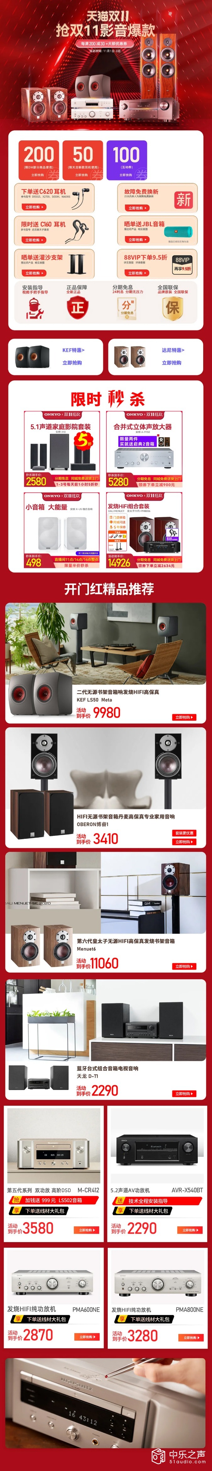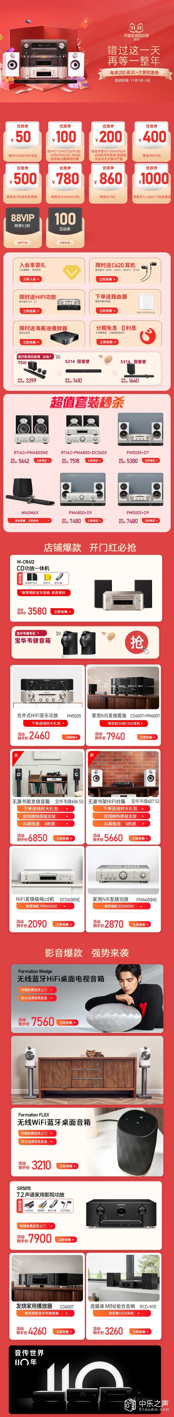 北京驰生影音双十一“猛料”来了,买音响免费得功放,全场24期免息,88VIP超额优惠券!